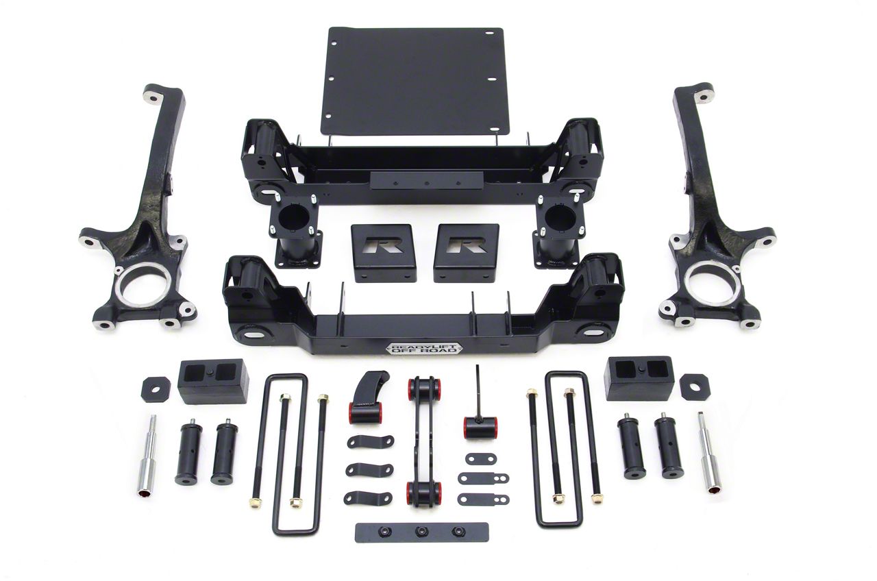 Commanding Stance. ReadyLIFT includes high-strength fabricated rear blocks and U-bolts for a reinforced stance and high off-road stability. The fabricated blocks exhibit high structural strength and offer a longer lifespan. In addition, these blocks are specifically engineered to prevent axle wrap issues.