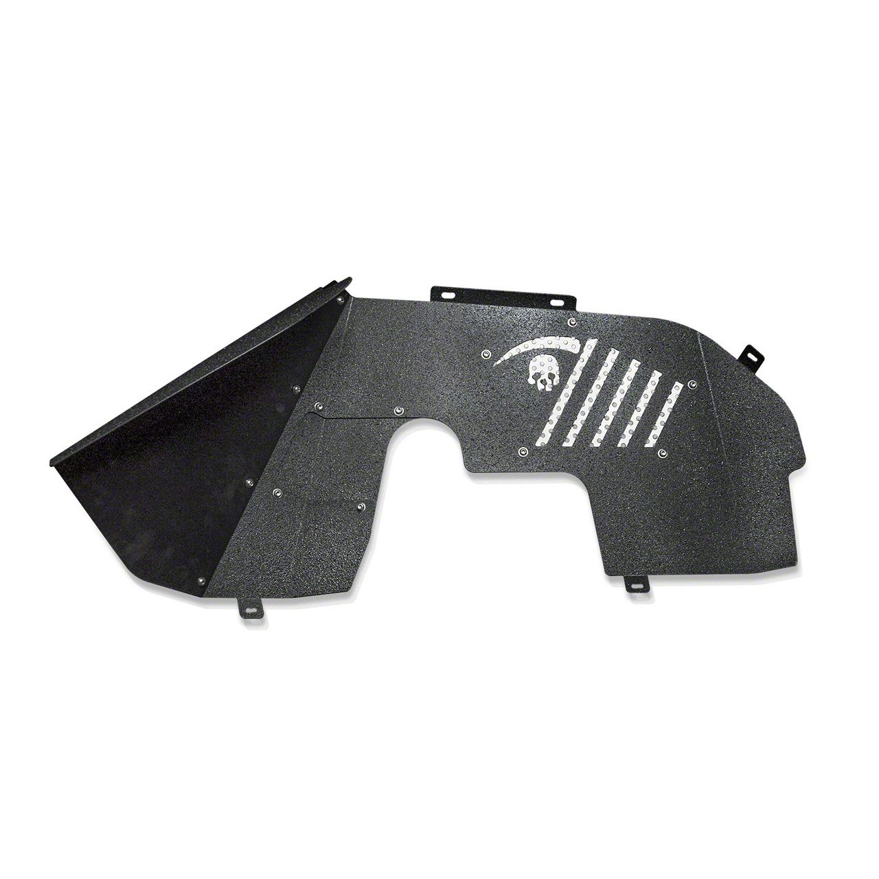 Sleek and Versatile Wheel Well Protection. Protect your front wheel wells in style with these Reaper Off-Road Front Fender Liners in Textured Black. These front inner fender liner assemblies are crafted from high-grade aluminum, making them much tougher compared to your Gladiator’s factory plastic counterparts. This factor allows them to provide your wheel wells and their surrounding suspension components greater protection against impact damage. Meanwhile, the liners’ modern angular design and customizable backing plate on the logo add a sleek design cue to your fender area that’s sure to turn heads. What’s more, these front inner fender liners feature removable trim panels that can accommodate remote reservoir shocks, eliminating the need for trimming.