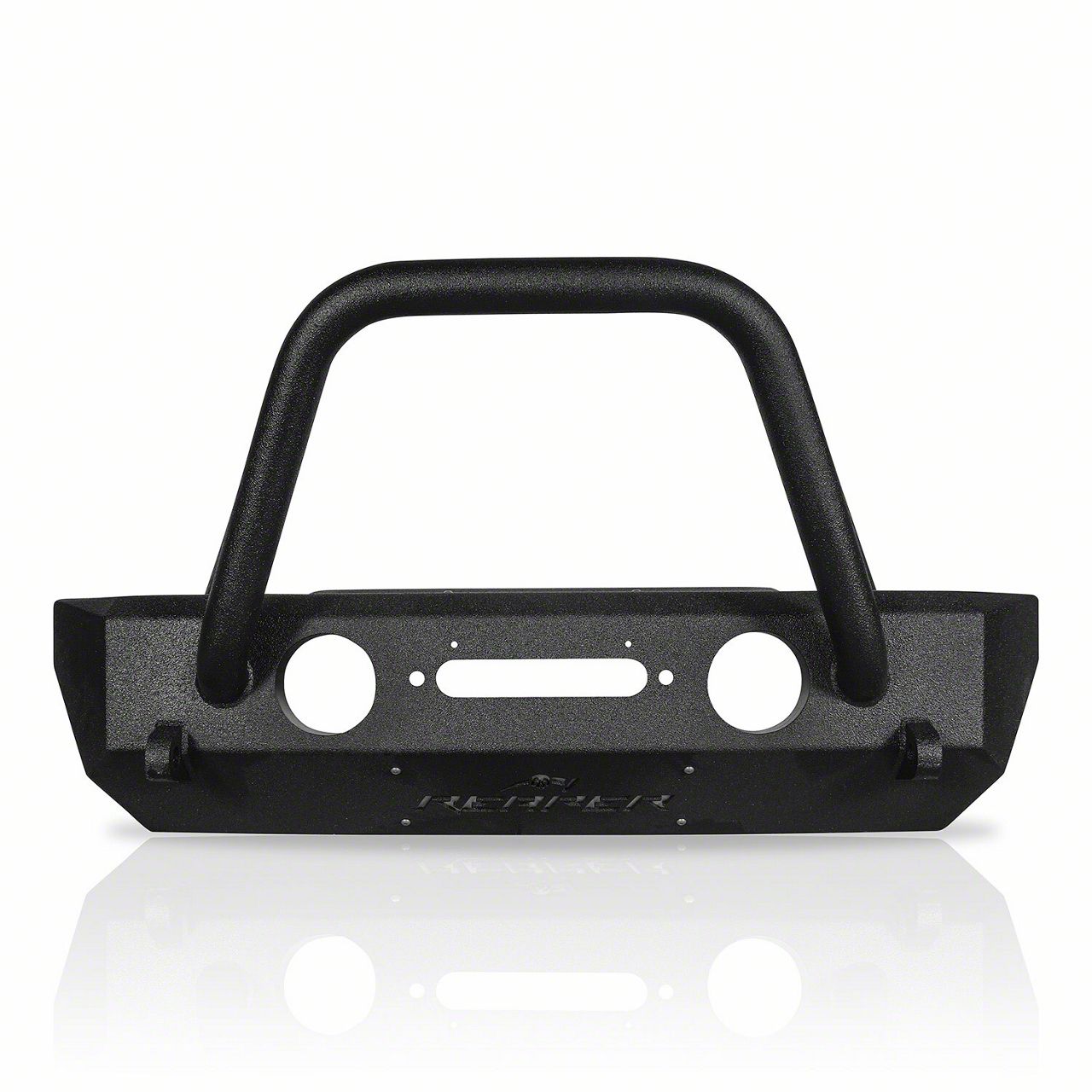 Rugged Style. The Reaper Off-Road Front Stubby Bumper with Bull Bar - Textured Black is designed for a heavy-duty off-road lifestyle. Welded inside and out for extra reinforcements, this cutting-edge bumper can take the abuse. Built to protect the grille with the attached bull bar, you’ll get unflinching front-end protection for all your off-road adventures.