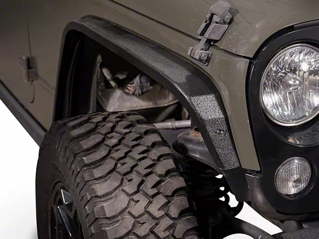 Stylish Enhancement and Protection. Add a touch of elegance and flair while protecting your JK Jeep Wrangler with these Gravestone J1 Front Fender Flares by Reaper Off-Road. Its 4-Inch slim profile offers excellent clearance and will enhance your vehicle with an aggressive yet sleek customized look that will get you noticed.