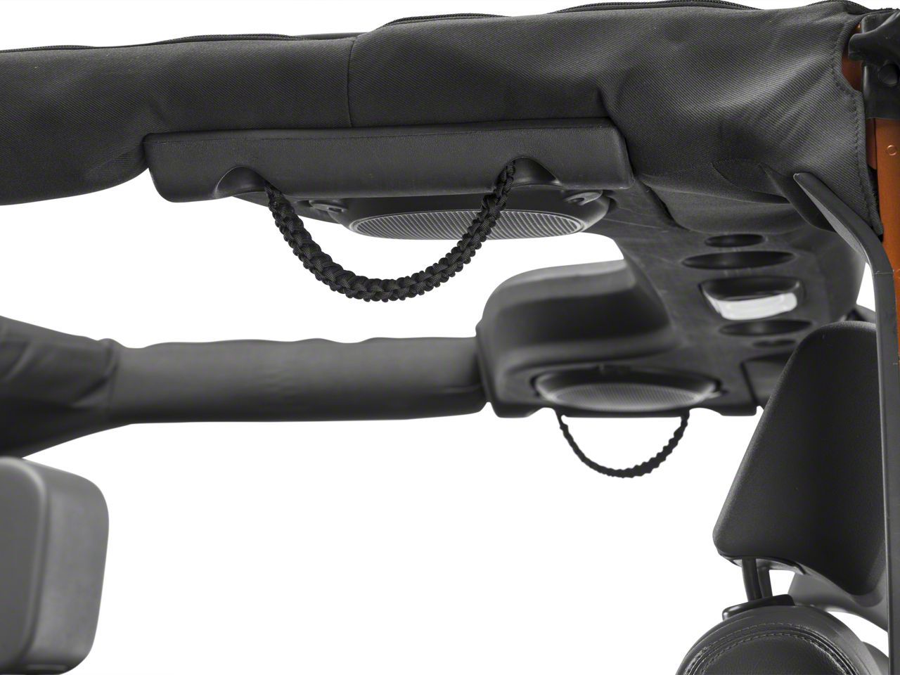 High-Strength Grab Handles. These Black Rear Soundbar Paracord Grab Handles utilize the same stuff the military uses to secure paratroopers' chutes, and combines it into a 3-strand woven design to provide extreme strength and anchoring for passengers in your four door 2007-2017 Wrangler JK.