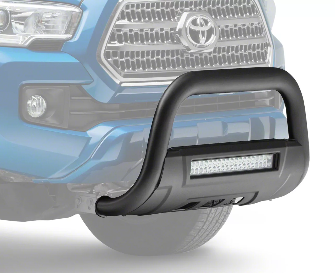 Application. This Black Barricade 3.50 Inch Bull Bar with Skid Plate and 20 Inch LED Light Bar is specifically designed for use on 2016-2023 Toyota Tacoma models. Not Compatible with Adaptive Cruise Control / Front Facing Camera Equipped Models.