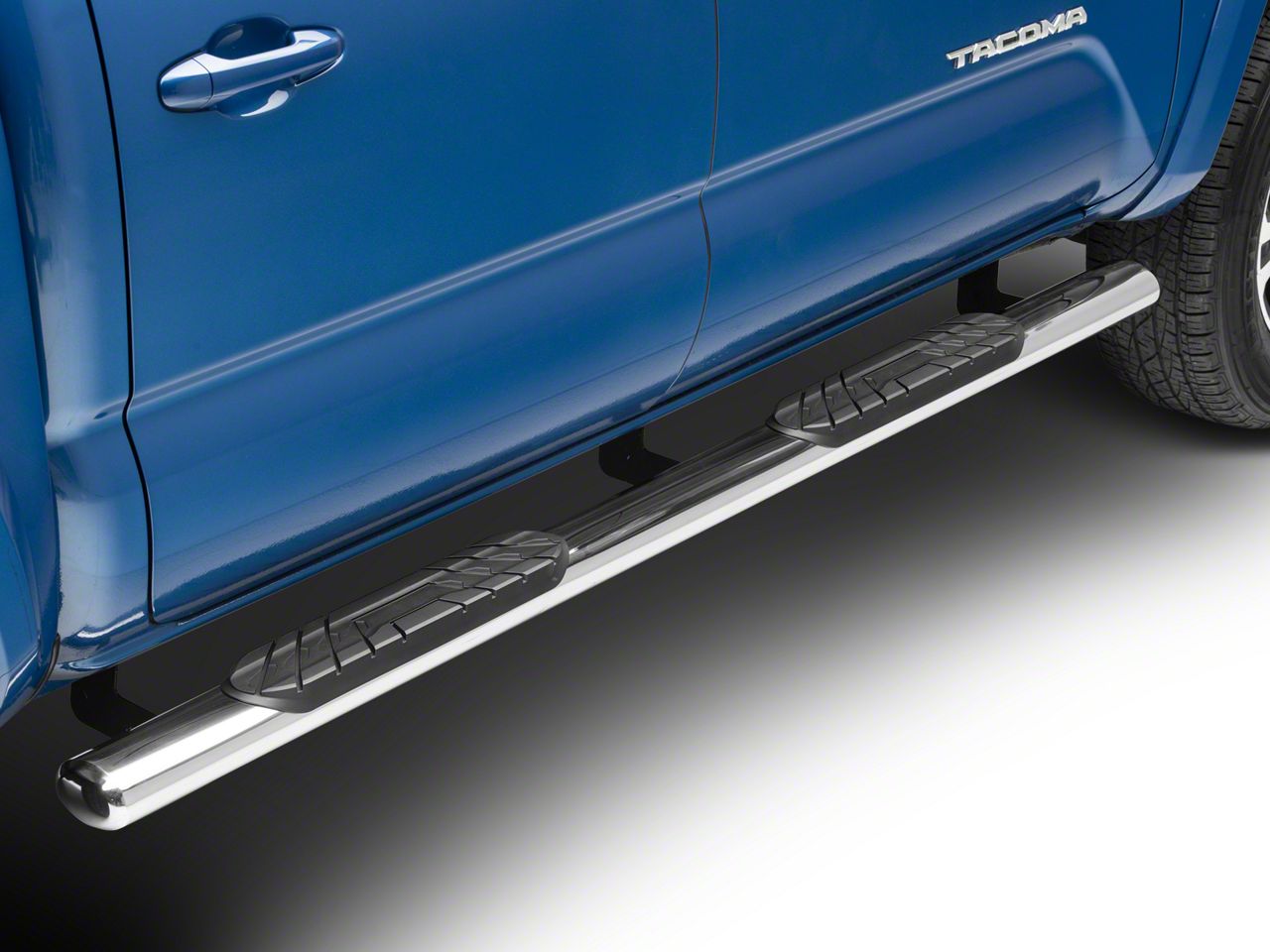 Application. These Polished Stainless RedRock 4x4 4-inch Oval Straight Side Step Bars are designed to fit 2005-2023 Toyota Tacoma Double Cab models. Driver and passenger are included.