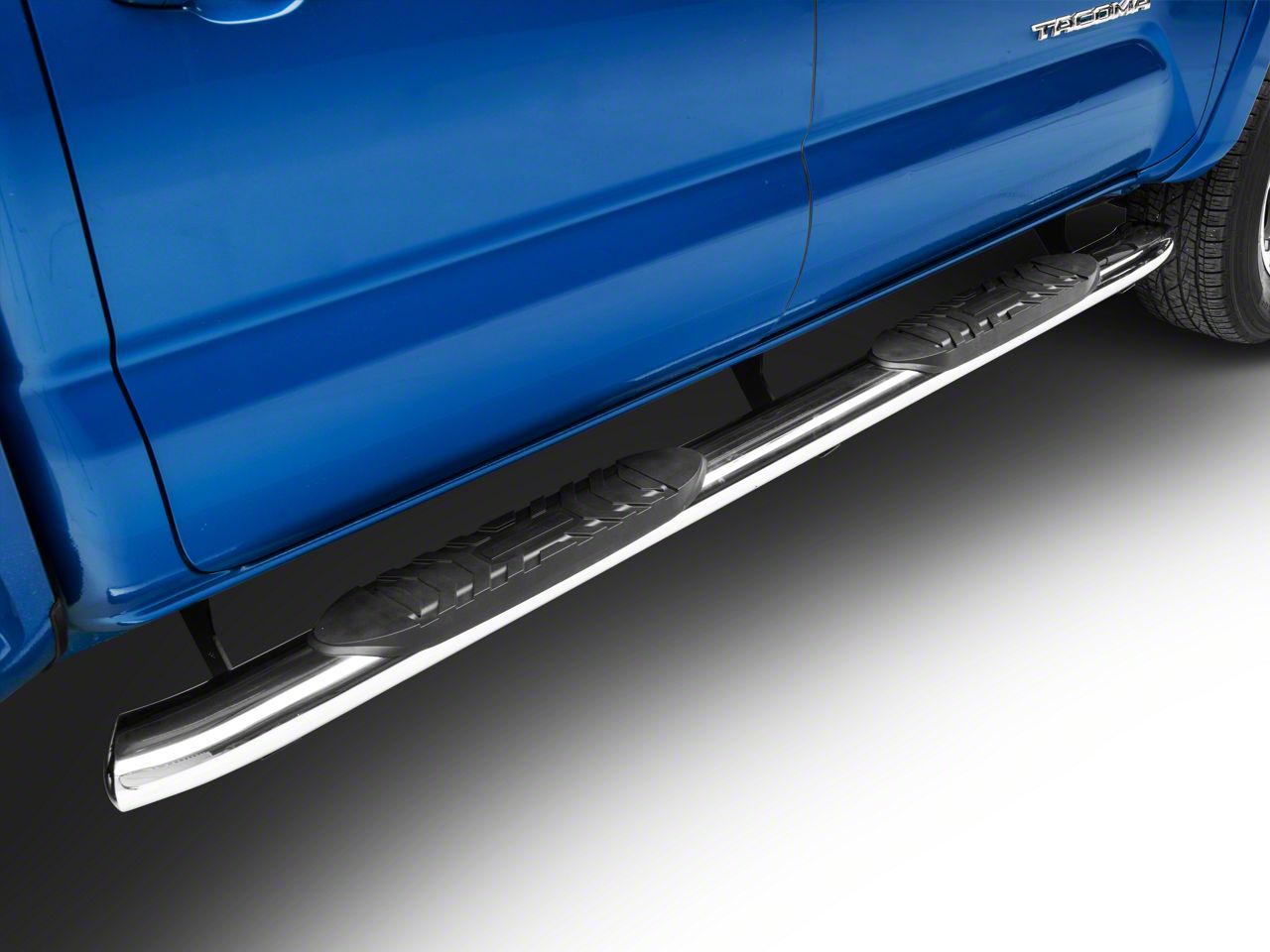 Dual Function. Make getting in and out of your Toyota Tacoma Double Cab a lot easier with a set of RedRock 4x4 5-inch Oval Bent End Side Step Bars. These polished RedRock 4x4 Side Step Bars will not only provide you with a convenient step for easy entry, but they will also give your Tacoma a clean classic appearance. In addition these Side Steps also double as side armor to provide additional protection from both road and trail hazards, as well as dreaded parking lot door dings.