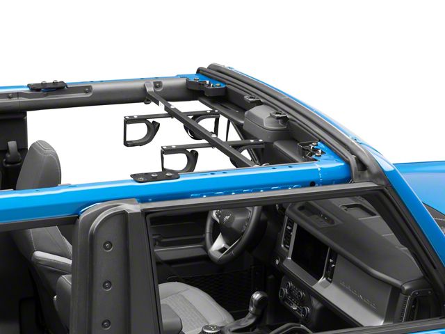 Setup. The patented "opposing force" installation system helps lock this gun rack to your Bronco's side roll bars.