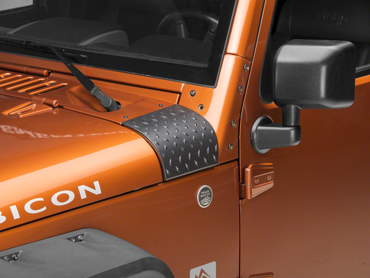 Protects Body Panels. Prevent dings and scratches from trail hazards, or an over extended door, with a set of Textured Black RedRock 4x4 Cowl Body Armor. This Wrangler JK Cowl Armor is simple to install and easily covers up existing damage while adding a bold, rugged appearance to your Jeep's exterior with its diamond plate design.