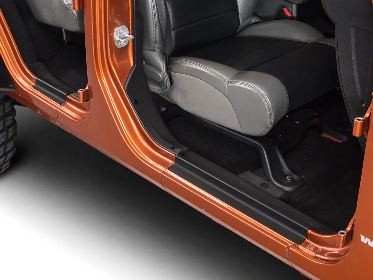 Extra Protection. Guard your Jeep Wranglers painted door sills from scuffs, scratches and other damage with a set of RedRock 4x4 Door Sill Entry Guards.  These Door Sill Entry Guards not only protect your Jeeps paint, but are an excellent way to cover up and hide existing scuffs and scratches for a much cleaner appearance.