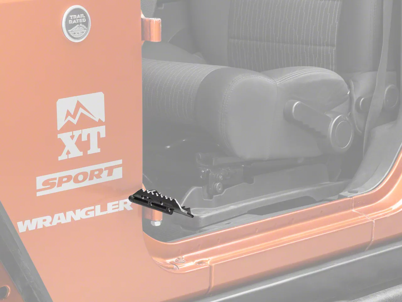 Convenient Foot Pegs. Don't know where to put your feet when you take the doors off your Jeep? The RedRock 4x4 Foot Pegs in textured black are the answer. You don't have to dangle your feet out your 2007-2018 Wrangler JK thanks to these strongly-built Foot Pegs that install simply.