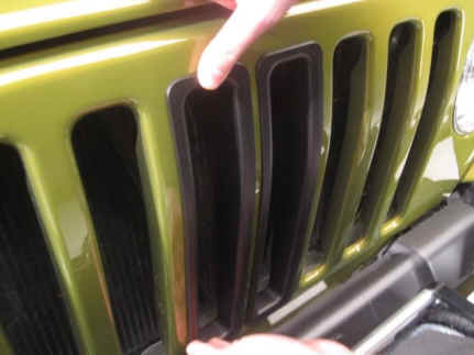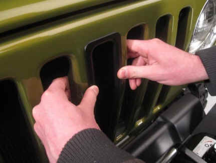 Peel the backing from the 3M tape on the grille surround and install in grille opening. The surrounds will fit snugly into the opening so there is no need for adjustment or alignment.