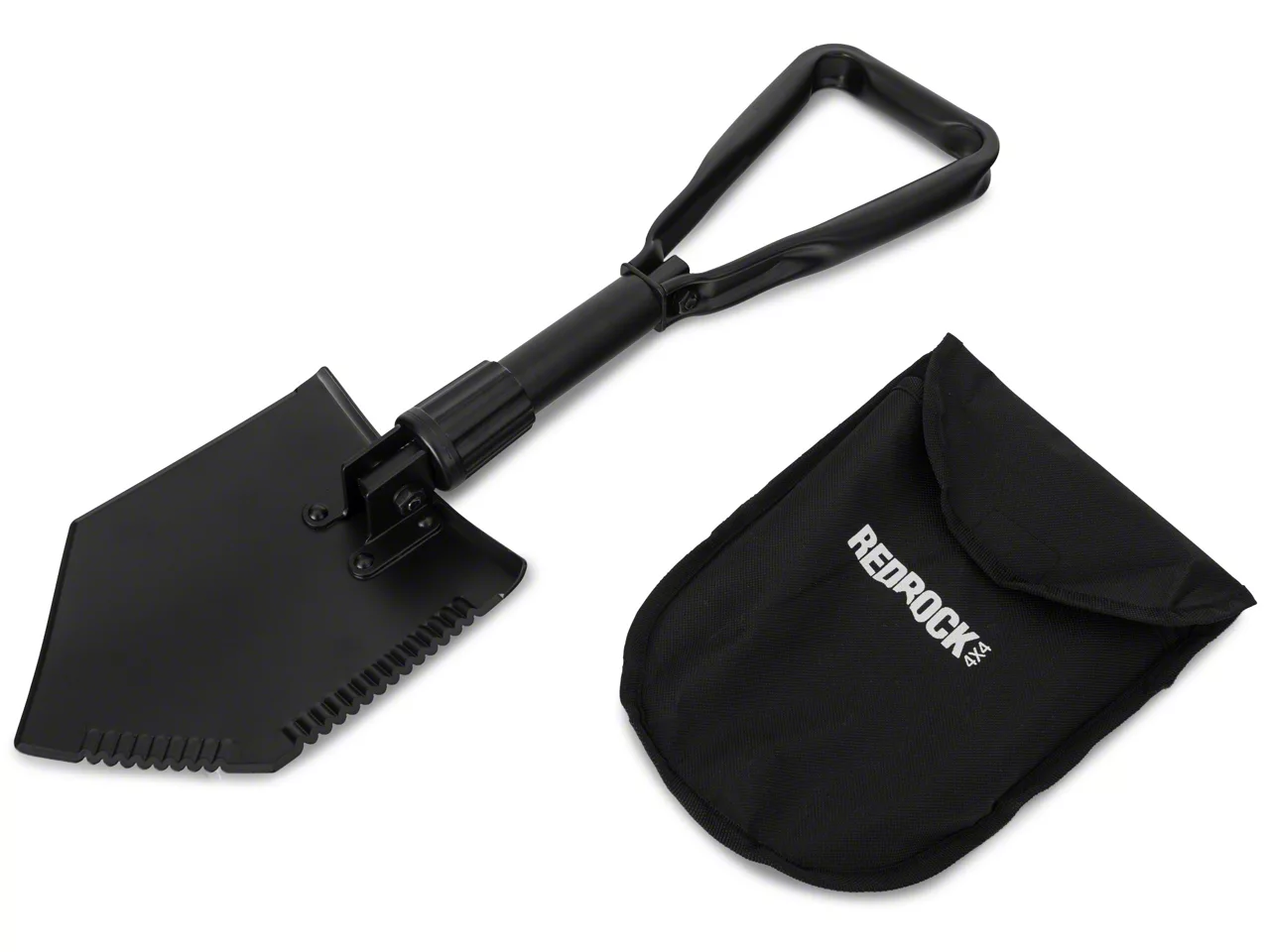 A Must for Off-roaders. Be prepared with a RedRock 4x4 Tri-Fold Recovery Shovel. This Recovery Shovel is the ideal accessory for the off-roader who finds themselves in need of a tool that can cut and dig. When open this Shovel measures 23" in length, but when folded it is only 9". The compact tri-fold design allows the Shovel to easily be stowed away in the included storage case. This RedRock 4x4 Heavy Duty Tri-Fold Recovery Shovel is a must for all off-roaders.