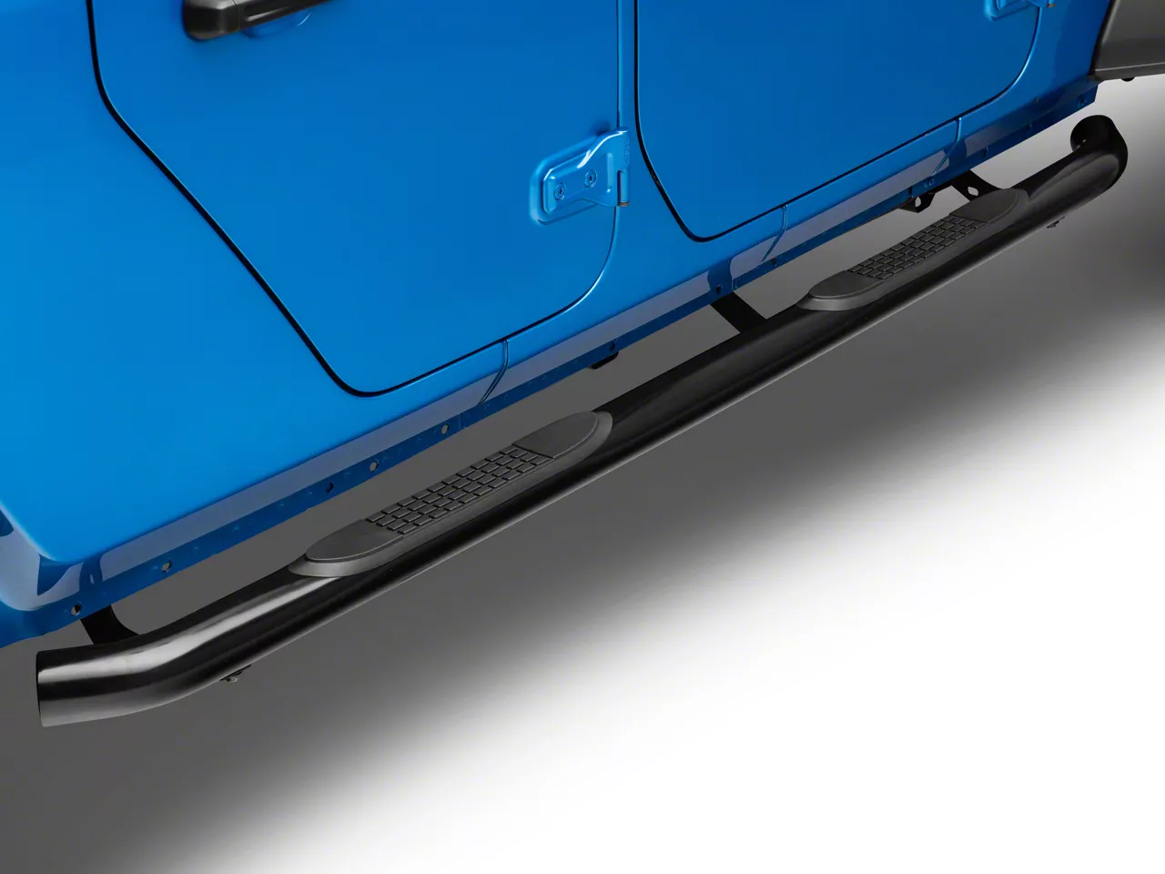 Style and Function. Upgrade the appearance of your 2020-2025 JT Jeep Gladiator with a pair of semi-gloss black RedRock 4x4 3-Inch Round Side Step Bars. These great looking Side Step Bars furnish a convenient 3-Inch wide step for easy entry in and out of your Gladiator.