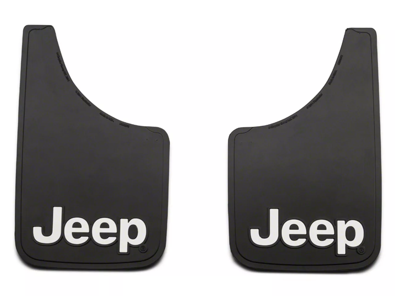 Stylish Protection. Show your Jeep pride with these great looking RedRock 4x4 Jeep Logo Easy Fit Mud Guards - 9x15. These guards feature the officially licensed Jeep logo in white for impressive styling. RedRock's Mud Guards not only look great, but they will also protect your Gladiator's body and paint from flying stones and trail debris. Measuring 9x15 inches, these Mud Guards will give your Jeep just the right amount of coverage and protection.