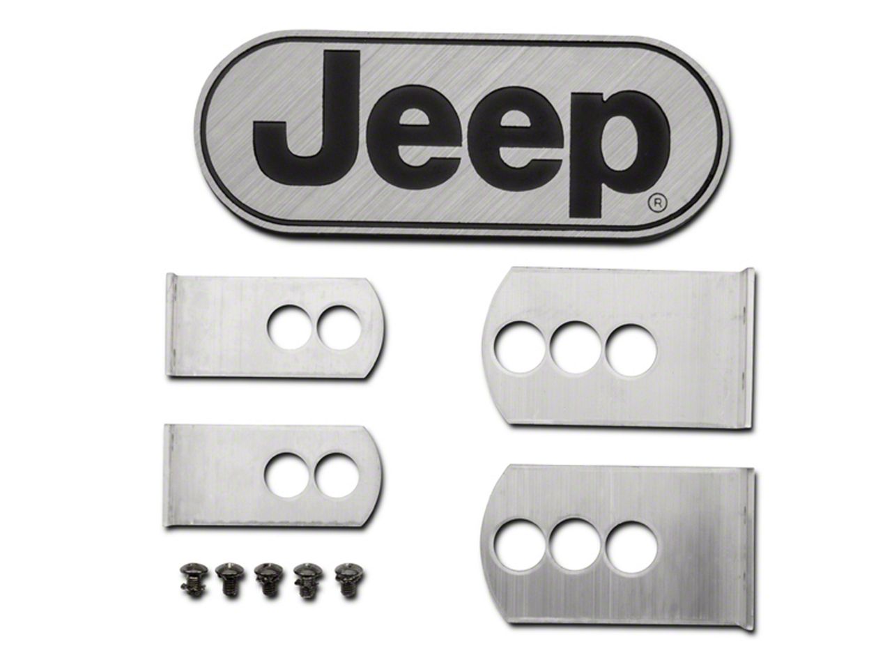 The Perfect Fit. Show your Gladiator pride with the RedRock 4x4 Jeep Logo Hitch Cover. This cover installs easily with the option of 3 pin holes to ensure a perfect fit. Cover up that rusty old receiver hitch with a stylish, easy-to-clean Jeep emblem in a brushed aluminum finish.