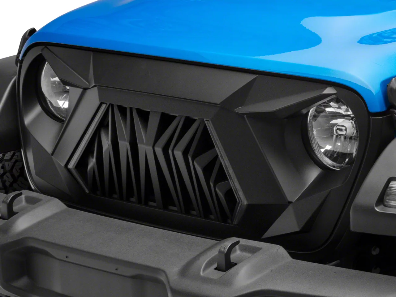 LED DRL Accent Lighting. This V2 Goliath Grille also includes two uniquely shaped white LED accent lights. These LED accent lights include a wiring harness that simply splices into your Gladiator's existing factory headlight harness. The LEDs will then automatically activate in conjunction with your running lights. The eye-catching LEDs not only look great, but will also make your Gladiator more visible to other drivers at night and in poor weather conditions.