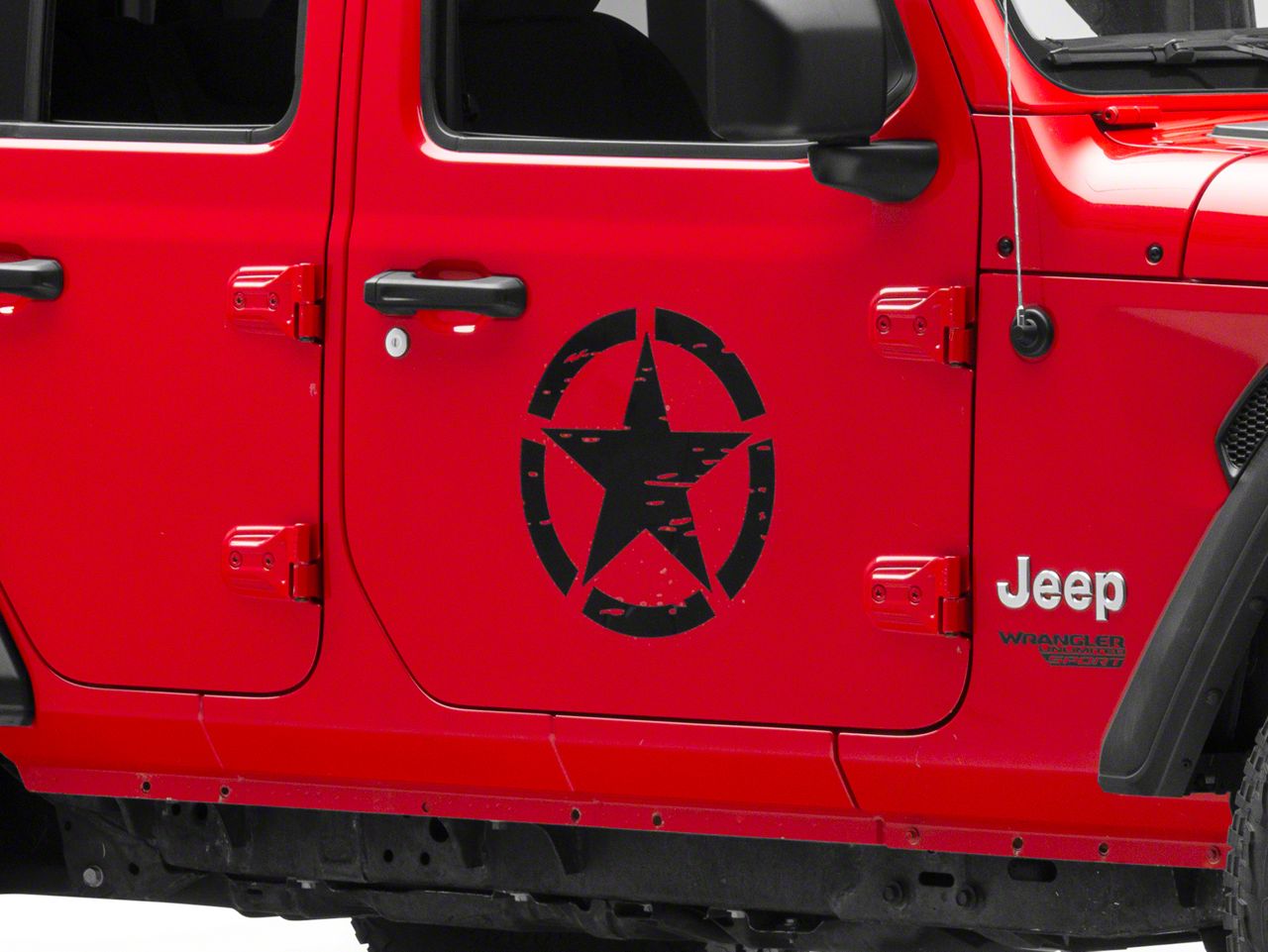 Distressed On The Move Star Decals. Now you can add patriotic US Military styling to your rig with this set of two black 16-inch Distressed On The Move Star Decals. These Decals harken back to the second world war and were used to identify US vehicles from the ones that were already in use by the allied forces.