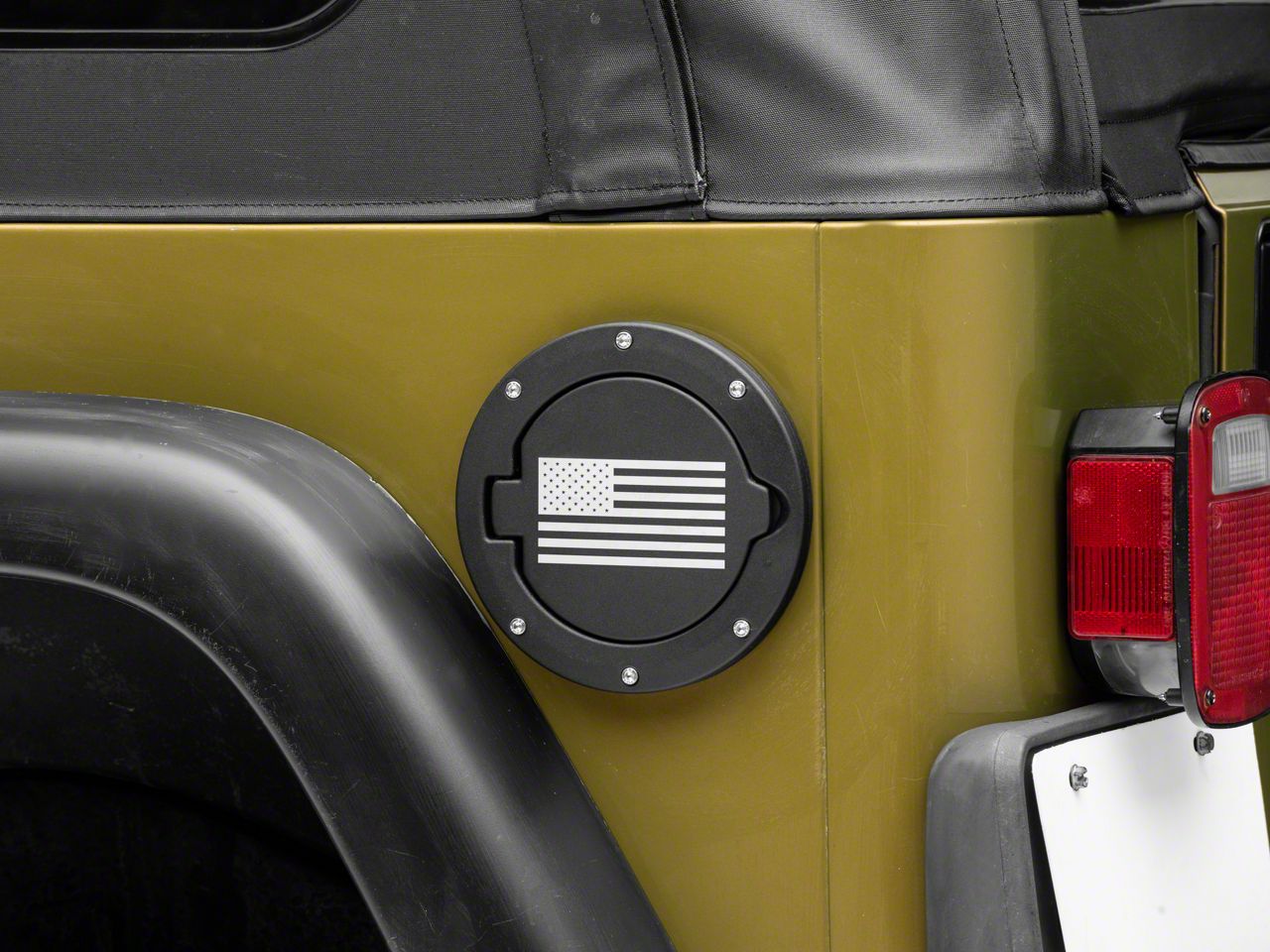 Patriotic Styling. Add a more patriotic appearance to your TJ Wrangler by installing a RedRock 4x4 Fuel Filler Door Cover that features a US Flag design. This Non-Locking Fuel Door is the perfect exterior styling upgrade to cover your Jeeps exposed gas cap. Featuring 8 simulated rivets around the outer circumference, this RedRock 4x4 Fuel Filler Door Cover will add a great look to your TJ Wrangler.