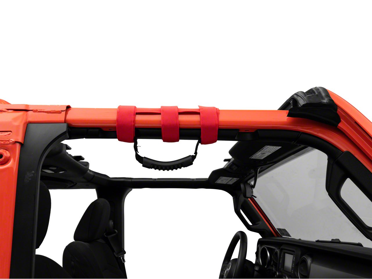 Application. This RedRock 4x4 Grab Bar Handle; Red features a universal design to fit 2-3 inch sport bars found on 1966-2026 Jeep CJ and Wrangler models. Sold individually.