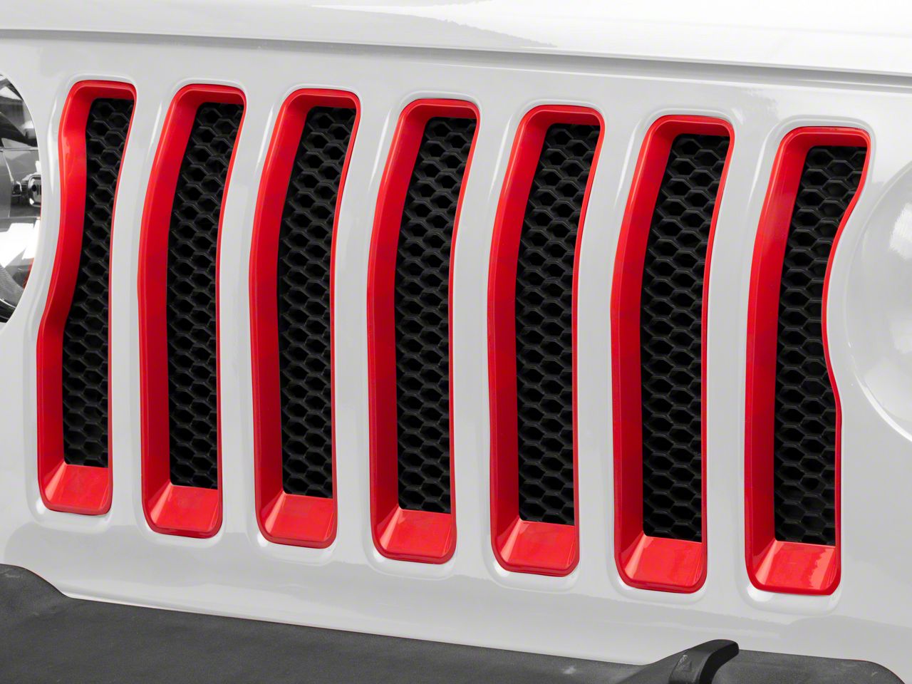 Custom Styling. Change up the exterior styling of your JL Sport with a set of red RedRock 4x4 Grille Inserts. Completed in a durable bright red finish, these Inserts will add a custom appearance to the front of your 2018-2023 Jeep Wrangler JL Sport.