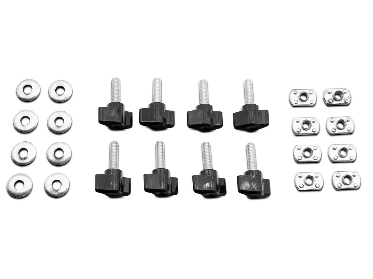 Quick Removal Fasteners. Stop searching for the correct size tools when installing or removing your Wrangler's Hard Top with a RedRock 4x4 Hard Top Quick Removal Fastener Kit. This Kit replaces your factory hardware with thumb screws making installation and removal super easy. Kit Includes (8) Thumb Screws, (8) Washers and (8) Plate Nuts.