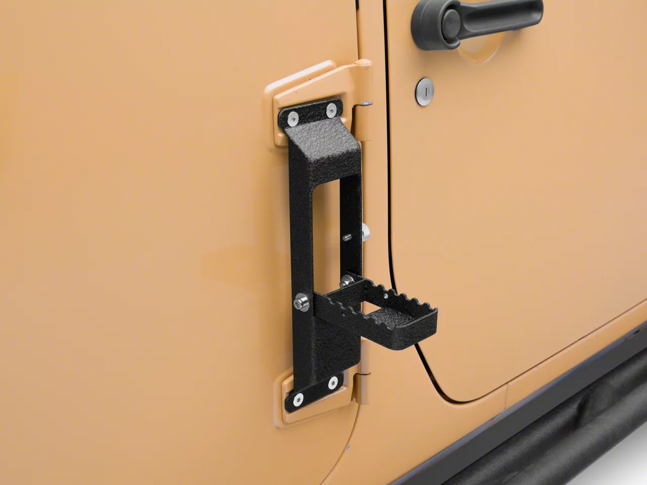 Simple, Bolt-On Design. RedRock 4x4 designed their Door Hinge Step to simply mount to your JK's door hinges using just basic hand tools. There is no drilling or cutting required for a clean, straight forward installation that can be completed in under an hour.