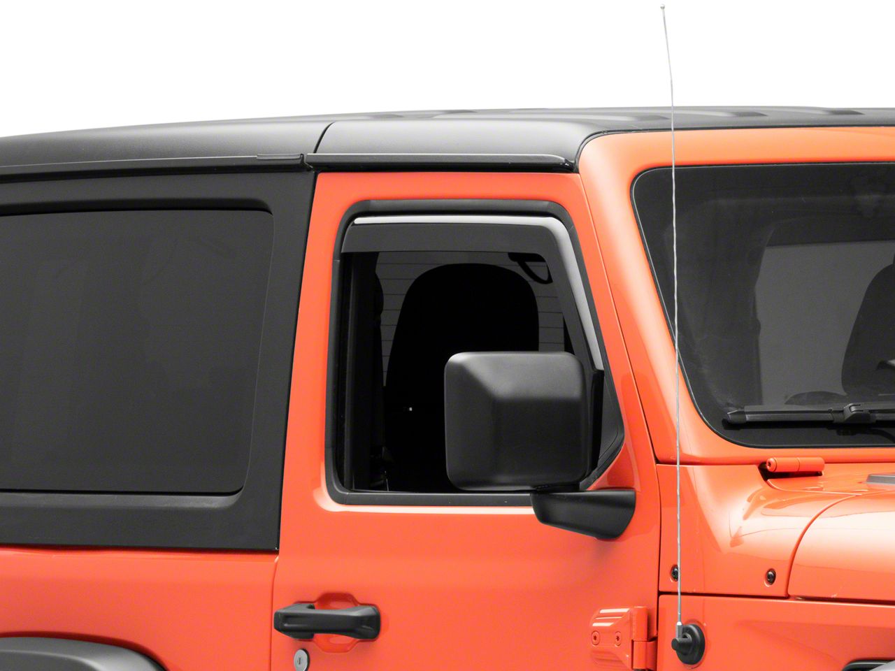 Application. These RedRock 4x4 In-Channel Style Side Window Deflectors are designed to fit 2018-2026 Jeep Wrangler JL 2-door models. Includes driver and passenger side deflectors.
