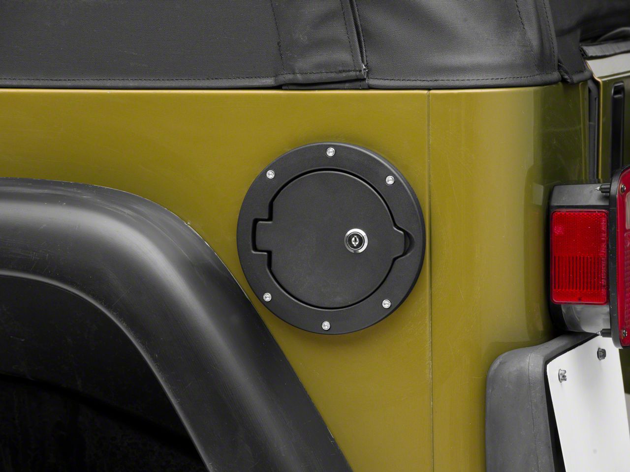 Rugged Styling. Add a more rugged appearance to your TJ Wrangler by installing a RedRock 4x4 Locking Fuel Door Cover. This Locking Fuel Door is the perfect exterior styling upgrade for your Wrangler as it features 6 simulated rivets around the outer circumference.