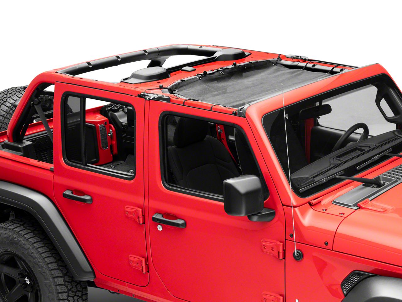 Plenty of Shade. Provide yourself and your front seat passengers with plenty of shade when enjoying a ride on a bright sunny day by installing a RedRock 4x4 Front Mesh Sun Shade. You can quickly and easily attach this Front Mesh Sun Shade to your Jeep’s roll bars and receive ample protection against the sun's harmful UV rays while still enjoying an open air ride.