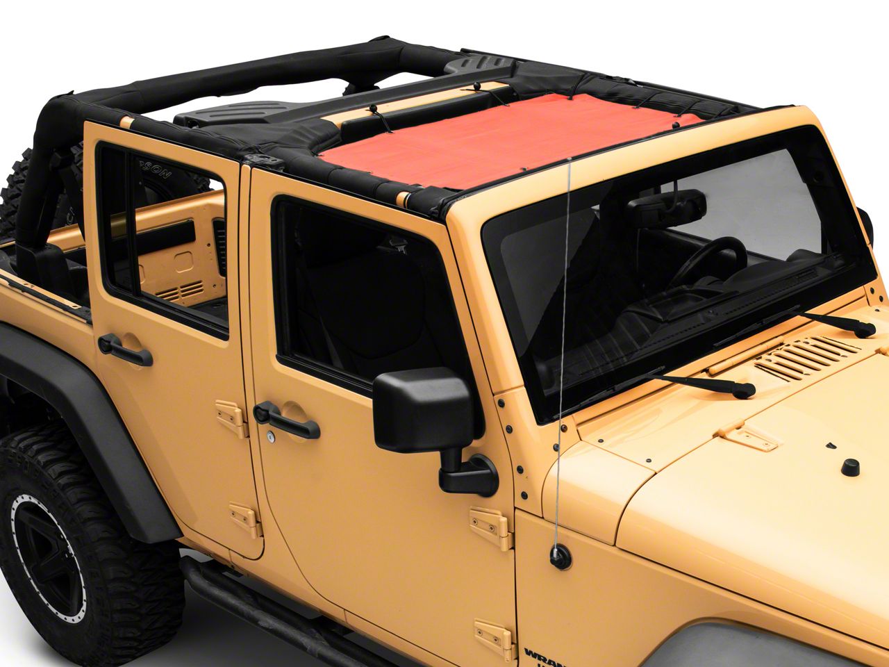Application. This RedRock 4x4 Mesh Sun Shade; Front; Red is designed to fit 2007-2018 Jeep Wrangler JK models.