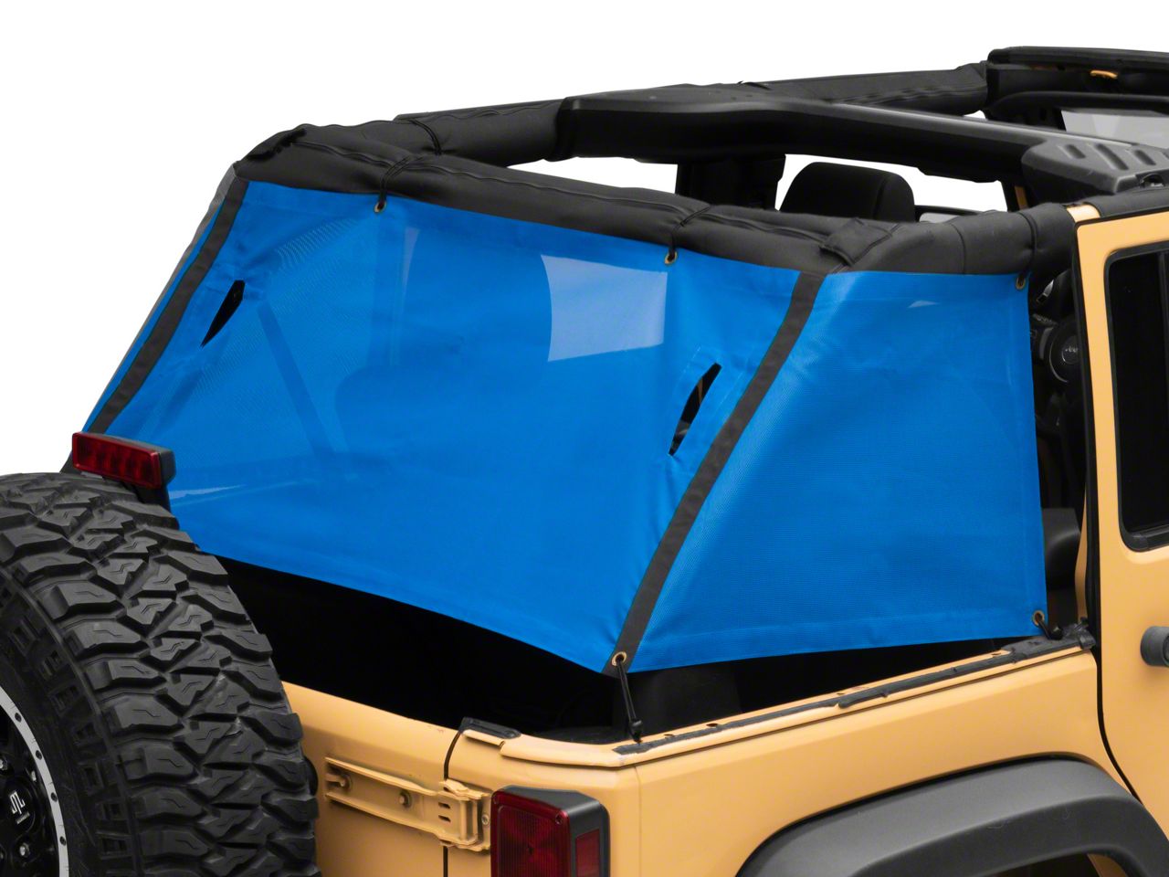 Application. This RedRock 4x4 Mesh Wrap-Around Cargo Shade; Blue is designed to fit 2007-2018 Jeep Wrangler JK 4-Door models.
