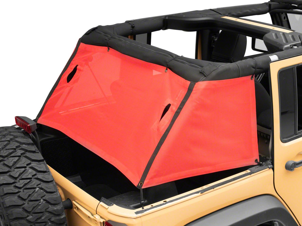 Application. This RedRock 4x4 Mesh Wrap-Around Cargo Shade; Red is designed to fit 2007-2018 Jeep Wrangler JK 4-Door models.