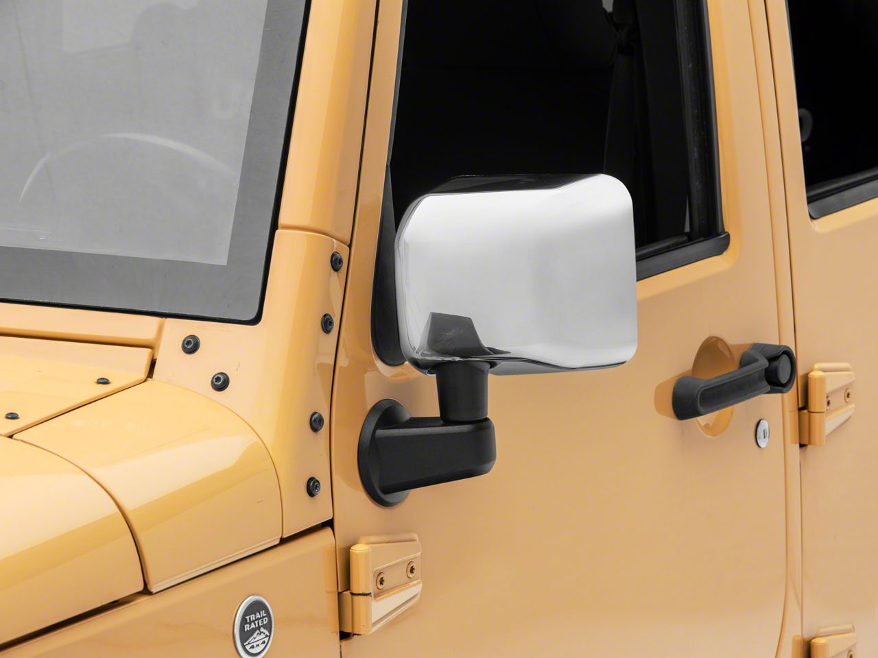 Chrome Styling. Give your 2007-2018 JK Wrangler the clean, classic touch of chrome with a pair of RedRock 4x4 Mirror Covers. Specifically designed for Wranglers with their original factory side mirrors still installed, these Mirror Appliques install over your stock mirrors in just minutes to create an entirely new look for your Jeep. These Covers look great when combined with RedRock 4x4's other chrome styling accents.