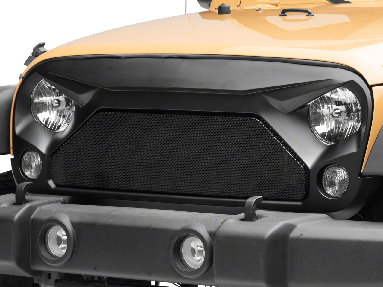 Intimidating Styling. Add intimidating styling to the front end of your 2007-2018 Jeep Wrangler with a Open Mesh Grille from RedRock 4x4. Designed to be installed in place of your Jeeps more cheerful looking factory grille, this RedRock 4x4 Grille will transform the appearance of your mild mannered friendly daily driver into an intimidating off-road machine.