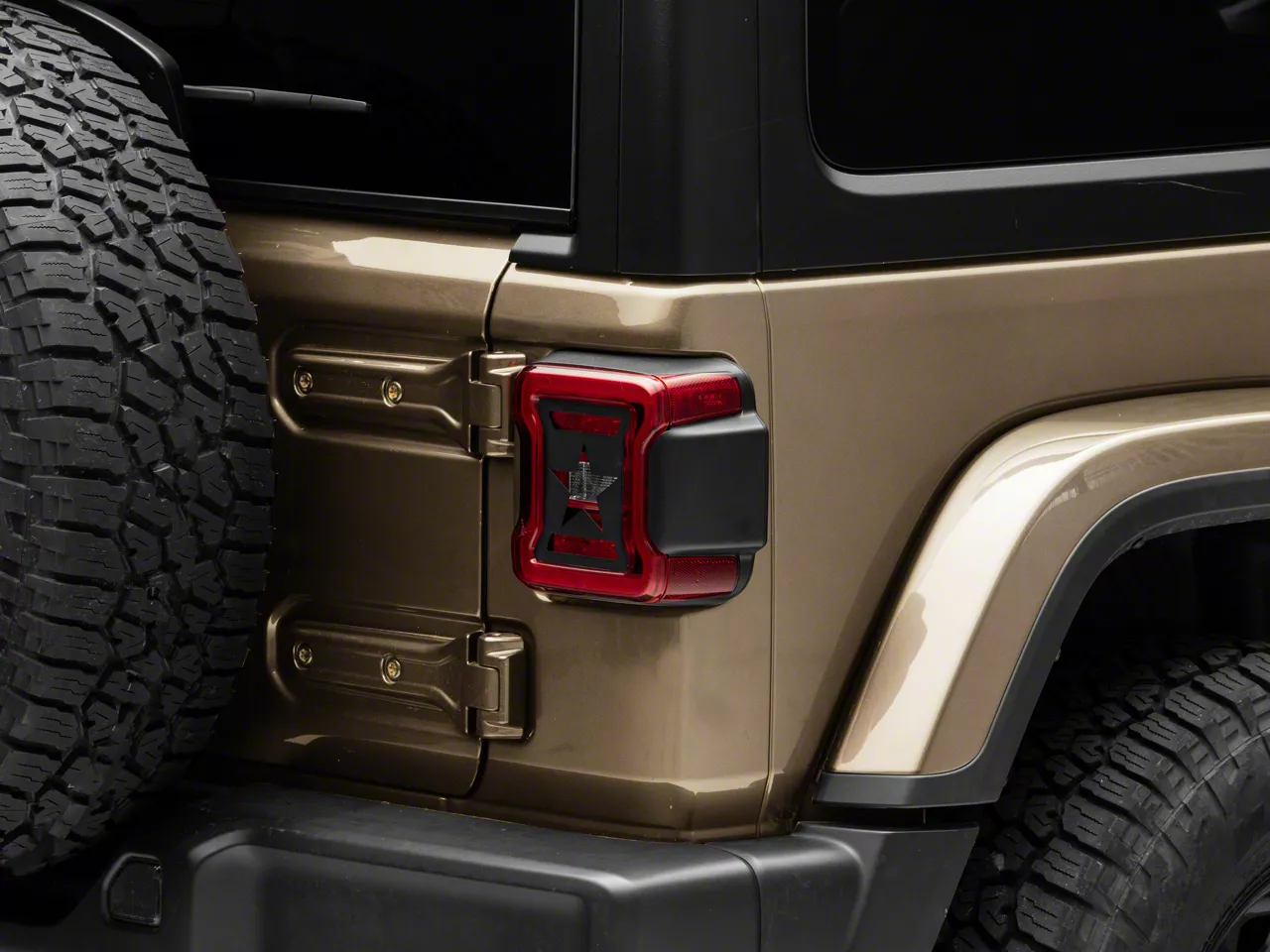 Application. These RedRock 4x4 Star Tail Light Covers are designed to fit 2018-2026 Jeep Wrangler JL models with Factory LED Tail Lights. Sold as a set of 2 Covers.