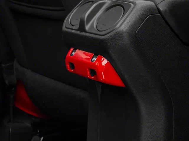 Custom Interior Styling. Add impressive custom show car styling to the interior of your 2018-2026 Jeep Wrangler JL with a RedRock Rear Center Console Switch Panel Trim Bezel. This great looking, red Trim Accent is an inexpensive way to upgrade the appearance of your interior and it perfectly matches RedRock's complete line of other red interior styling parts.