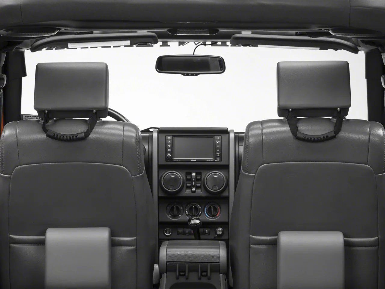 Easy Installation. Pop your front headrests off, slide these Red Rock Grab Handles over the headrest posts, then reinstall the headrests. Done.