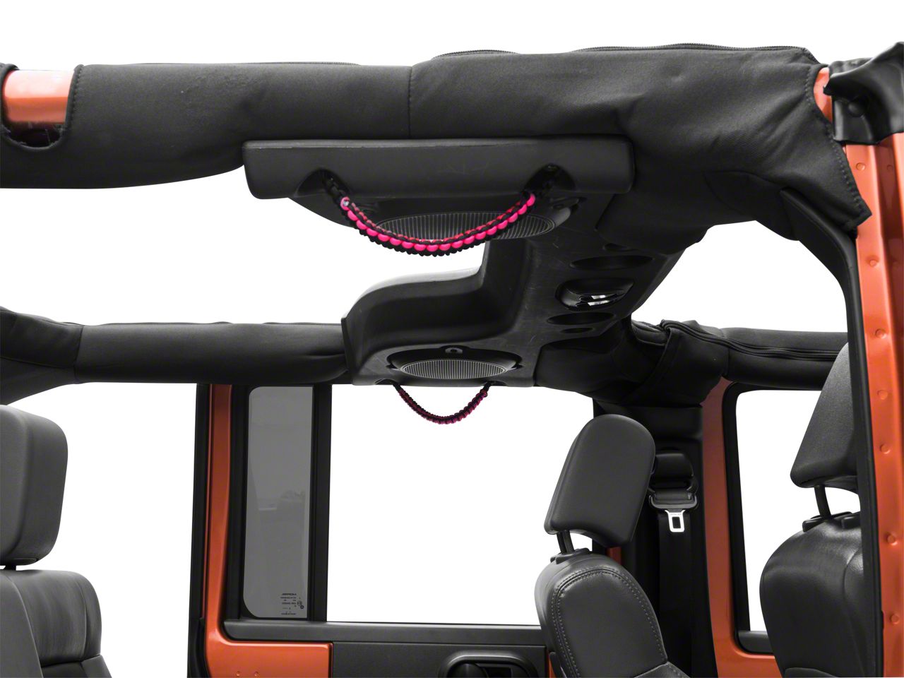 Application. These Black and Pink Rear Soundbar Paracord Grab Handles are the perfect solution for any 2007-2018 Jeep Wrangler JK 4 Door models.