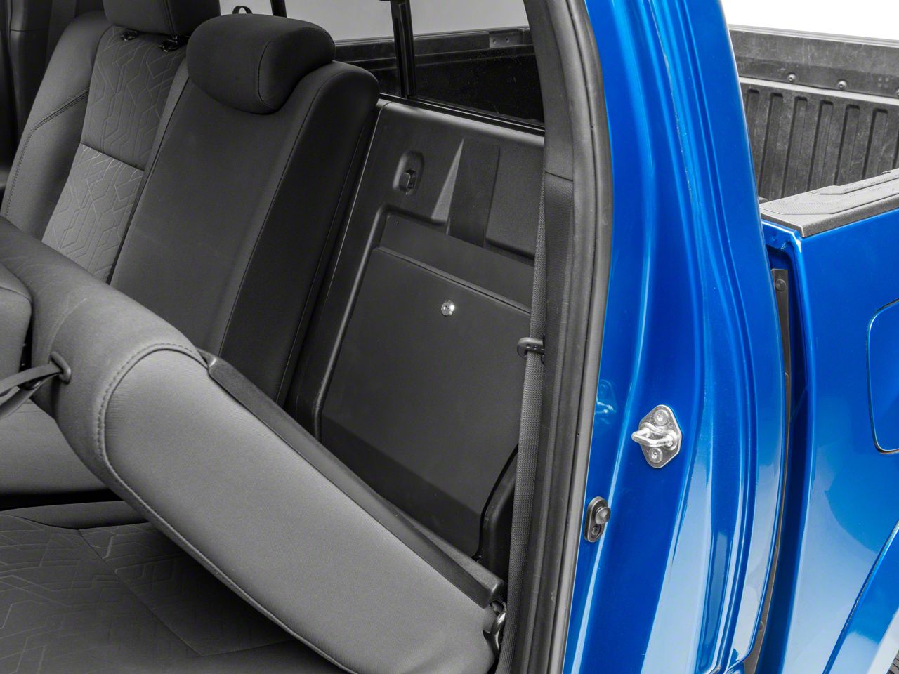 Lockable and Secure. Convert your Tacoma's rear seat storage panel into a secure and lockable safe. This RedRock Under Seat Lock Box bolts directly to the rear seat storage panel and features metal hinges with a cam style lock making it ideal for safely transporting valuables or firearms.