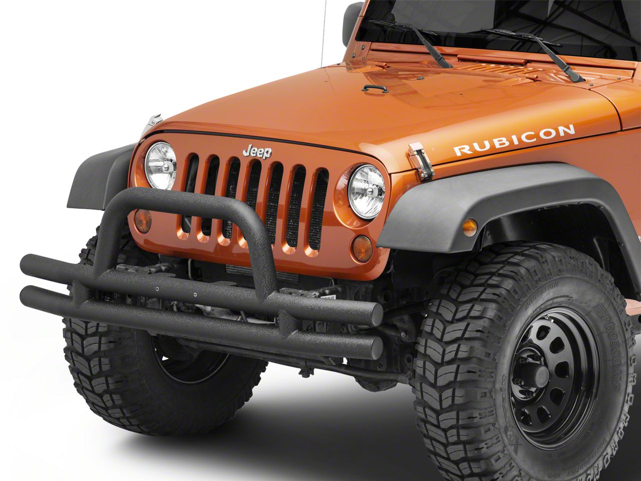 Powerful Front Armor for your Wrangler. Keep your front end fully protected from off-road chip blasts and hard rock impact with the RedRock 4x4 Tubular Front Bumper. It takes care of that all-important nose of your JK and looks pretty amazing in doing so.