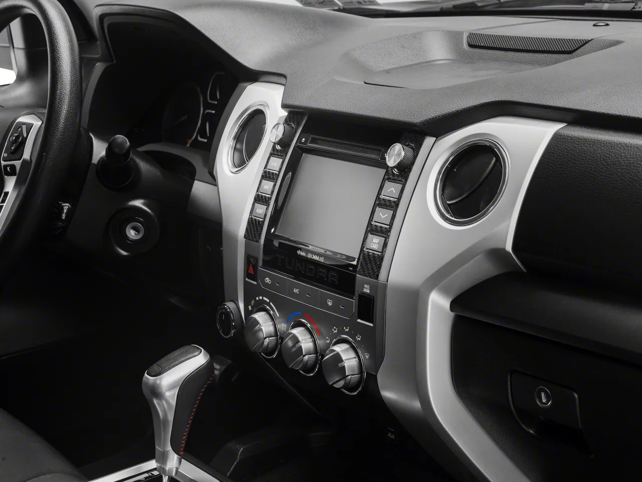 Application. These RedRock Center Console Trim Accents; Carbon Fiber are designed to fit 2014-2021 Toyota Tundra models without an 8-Inch Screen.