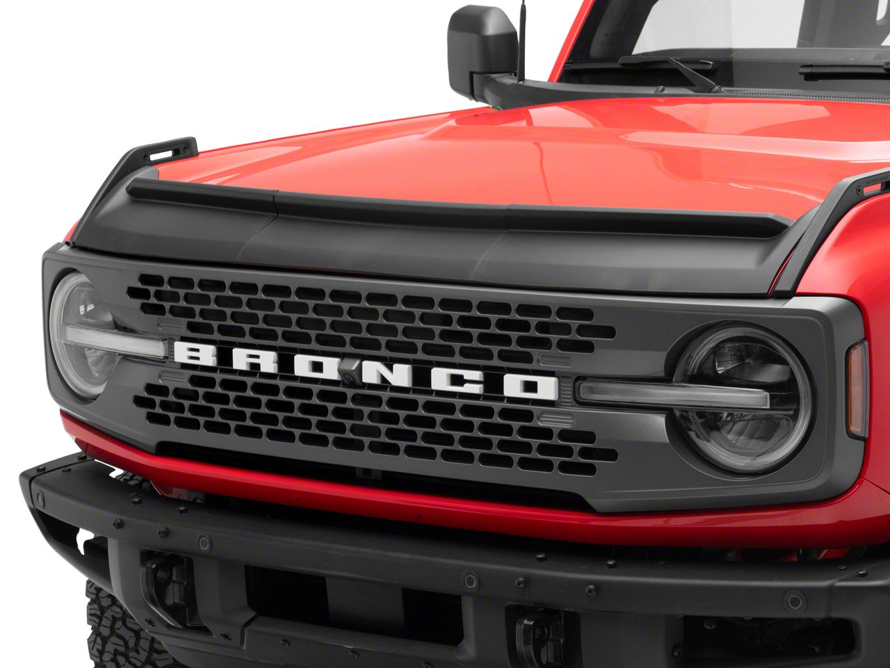 Extra Protection. Shield the leading edge of your 2021-2025 Ford Bronco's hood from rocks, stones, and other road debris with a RedRock 3-piece Bug Deflector. A hood deflector, sometimes called a Bug Guard, will give you all of the benefits of a traditional automotive bra without the hassles.