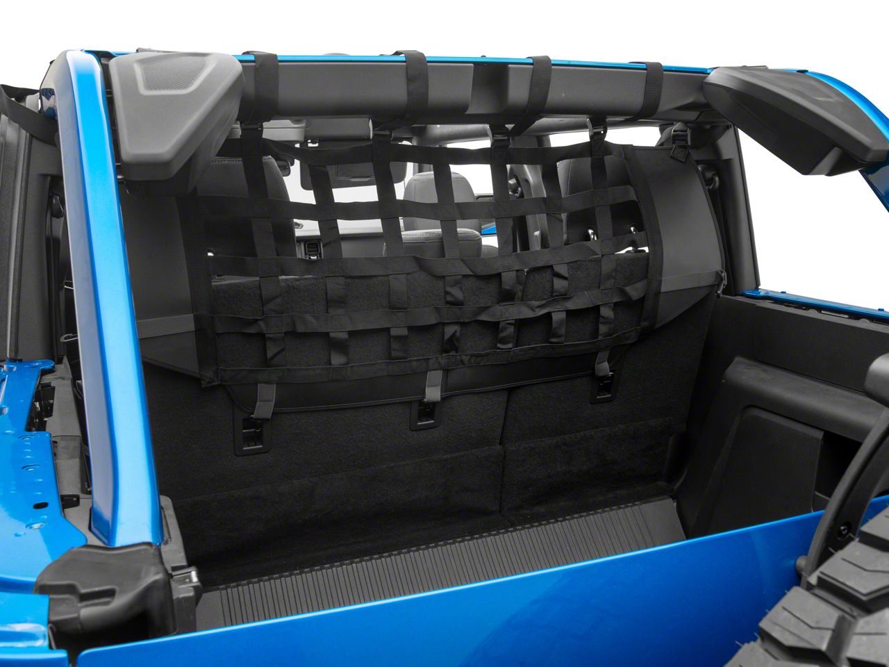 Keep Gear and Cargo Secure. Designed to install behind the rear seats, RedRock's Cargo Net is a great way to ensure that all of your gear and cargo remains safely in place and not scattered about the interior of your Bronco.
