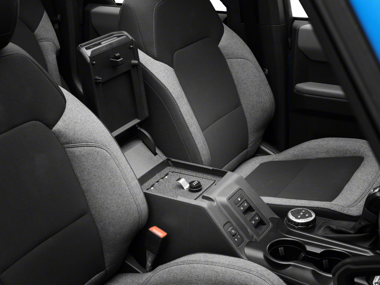 Application. This RedRock Center Console Lock Box is designed to fit 2021-2025 Ford Bronco models.