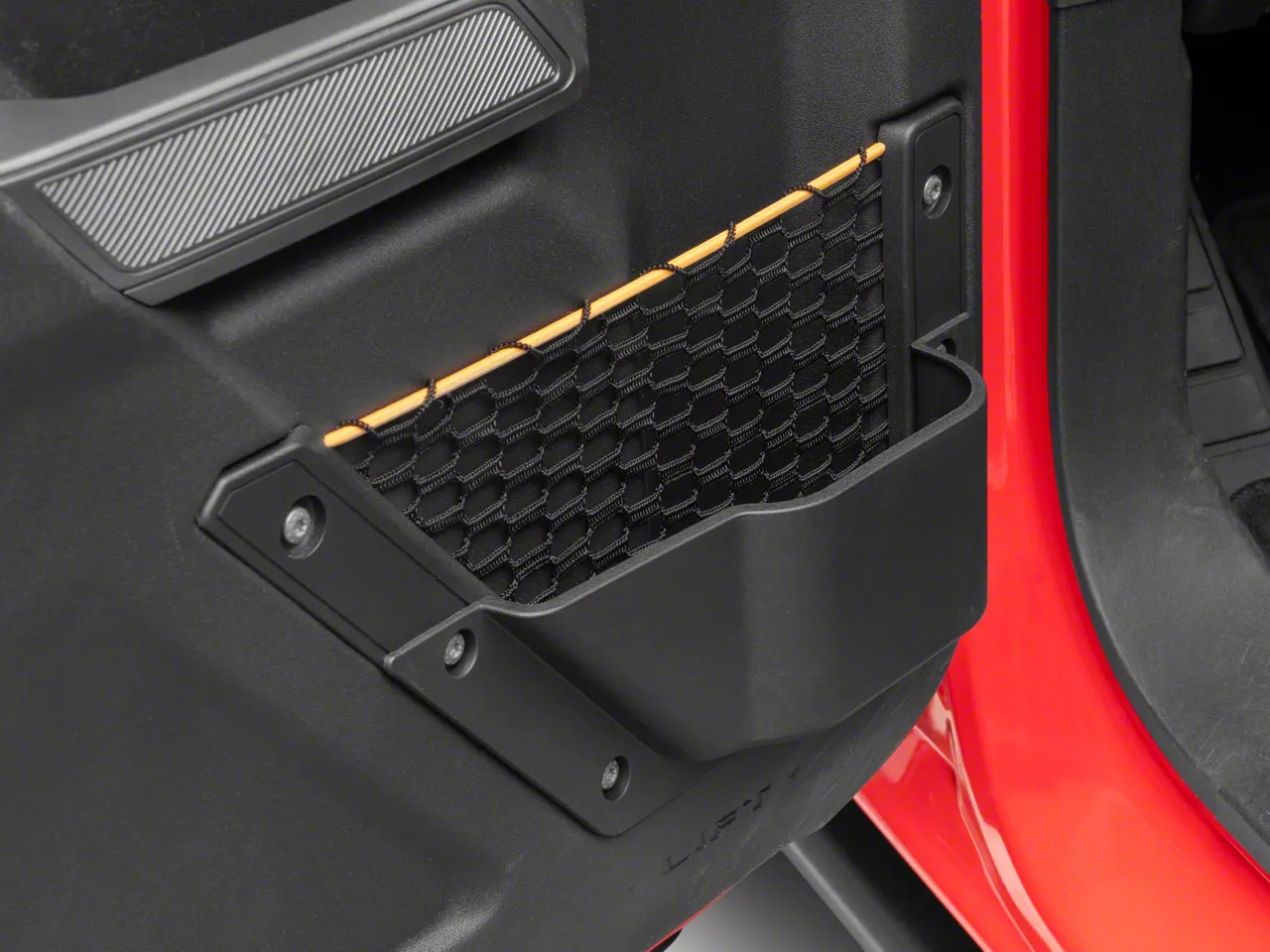 Door Panel Storage. Now you can have a convenient place to hold your drinks or small loose items with RedRock's Door Mounted Storage Compartment and Pocket Kit Combo Kit. This Kit is ideal for Bronco owners looking to maximize interior storage space.