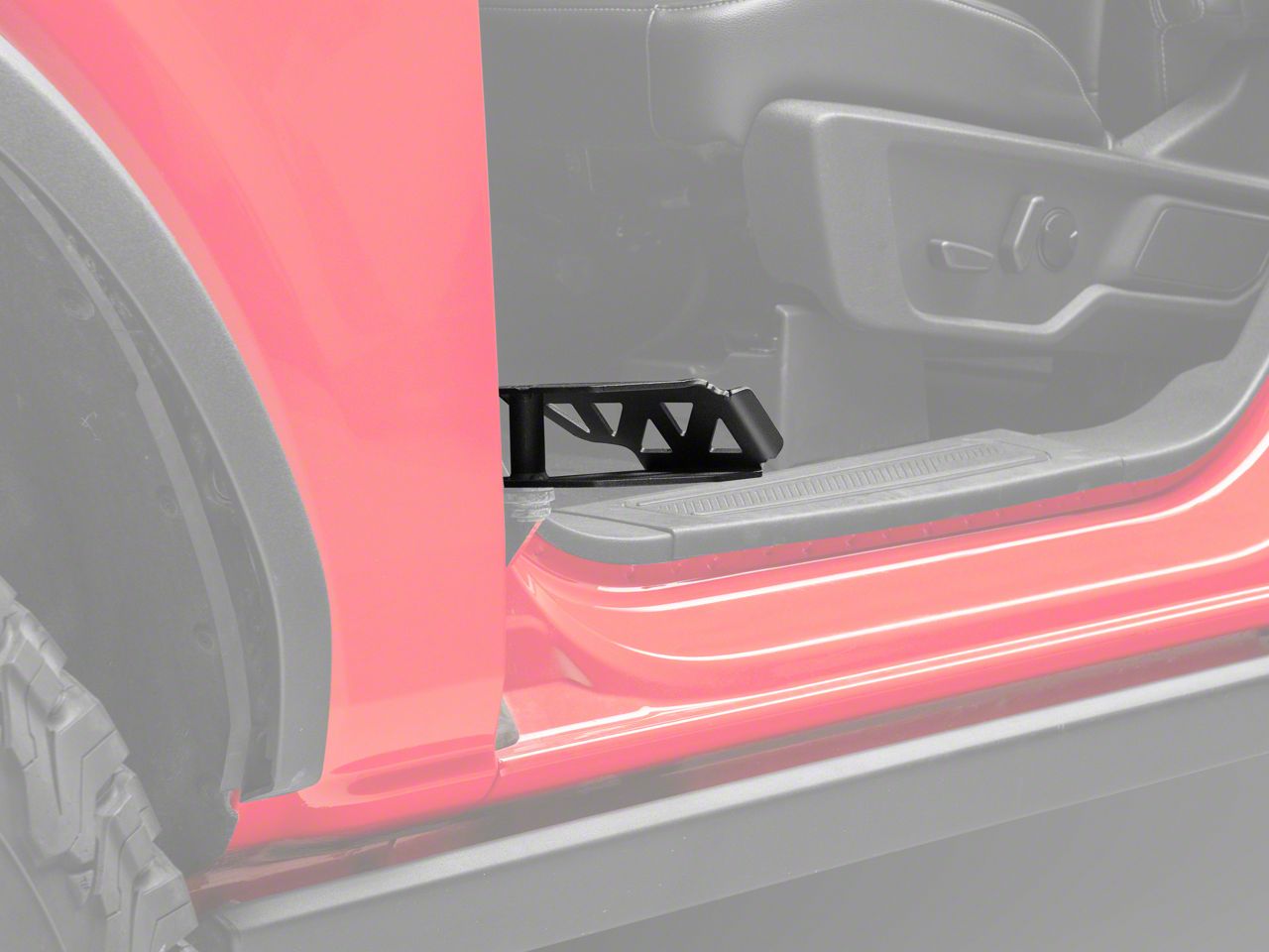 Application. This RedRock Foot Rest Pedal Set; Front and Rear is designed to fit 2021-2025 Ford Bronco 4-Door models. Designed for front and rear doors. Driver and passenger side included.