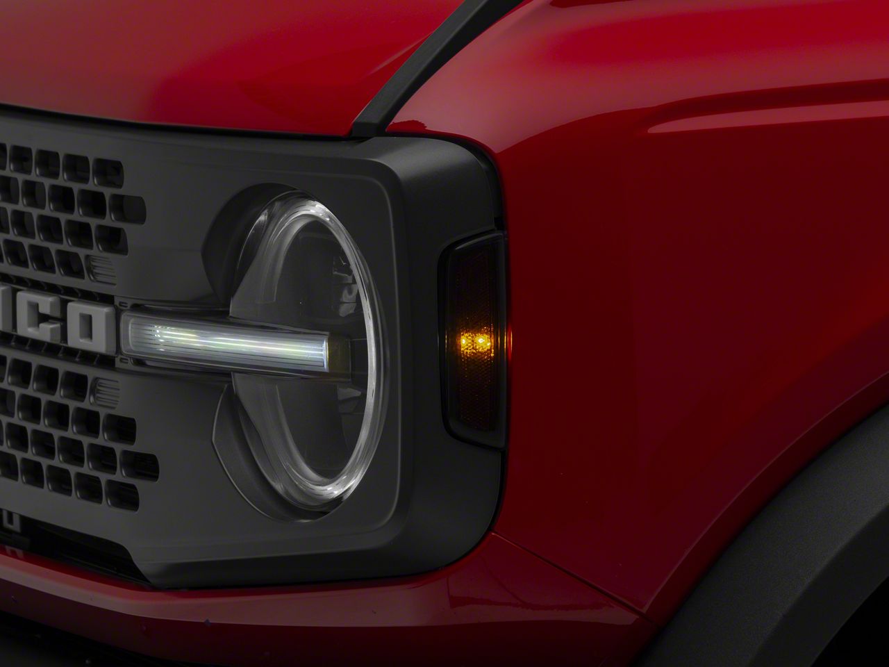 Application. These RedRock Grille Side Marker Light Covers; Smoked are designed to fit 2021-2025 Ford Bronco models. Driver and passenger side included.