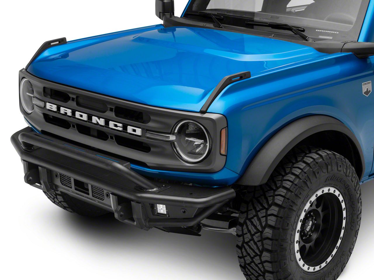 Application. This RedRock HD Tubular Front Bumper with LED Fog Lights and Skid Plate is designed to fit 2021-2026 Ford Bronco models. This Bumper is designed to work with models that are equipped with or without front mounted parking sensors.