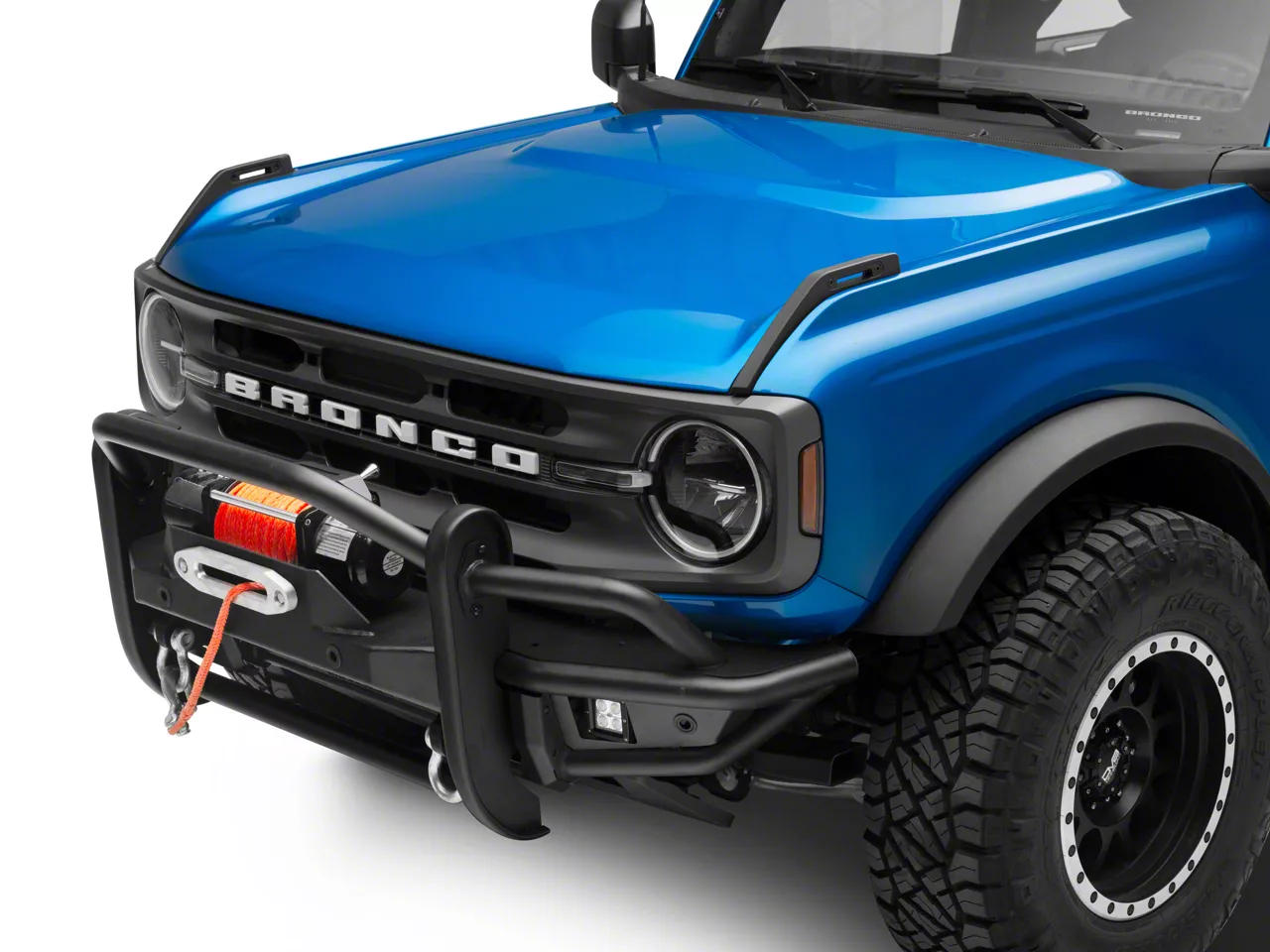 Application. This RedRock HD Tubular Front Winch Mount Bumper with LED Fog Lights and Grille Guard is designed to fit 2021-2026 Ford Bronco models. This Bumper is designed to work with models that are equipped with or without front mounted parking sensors.