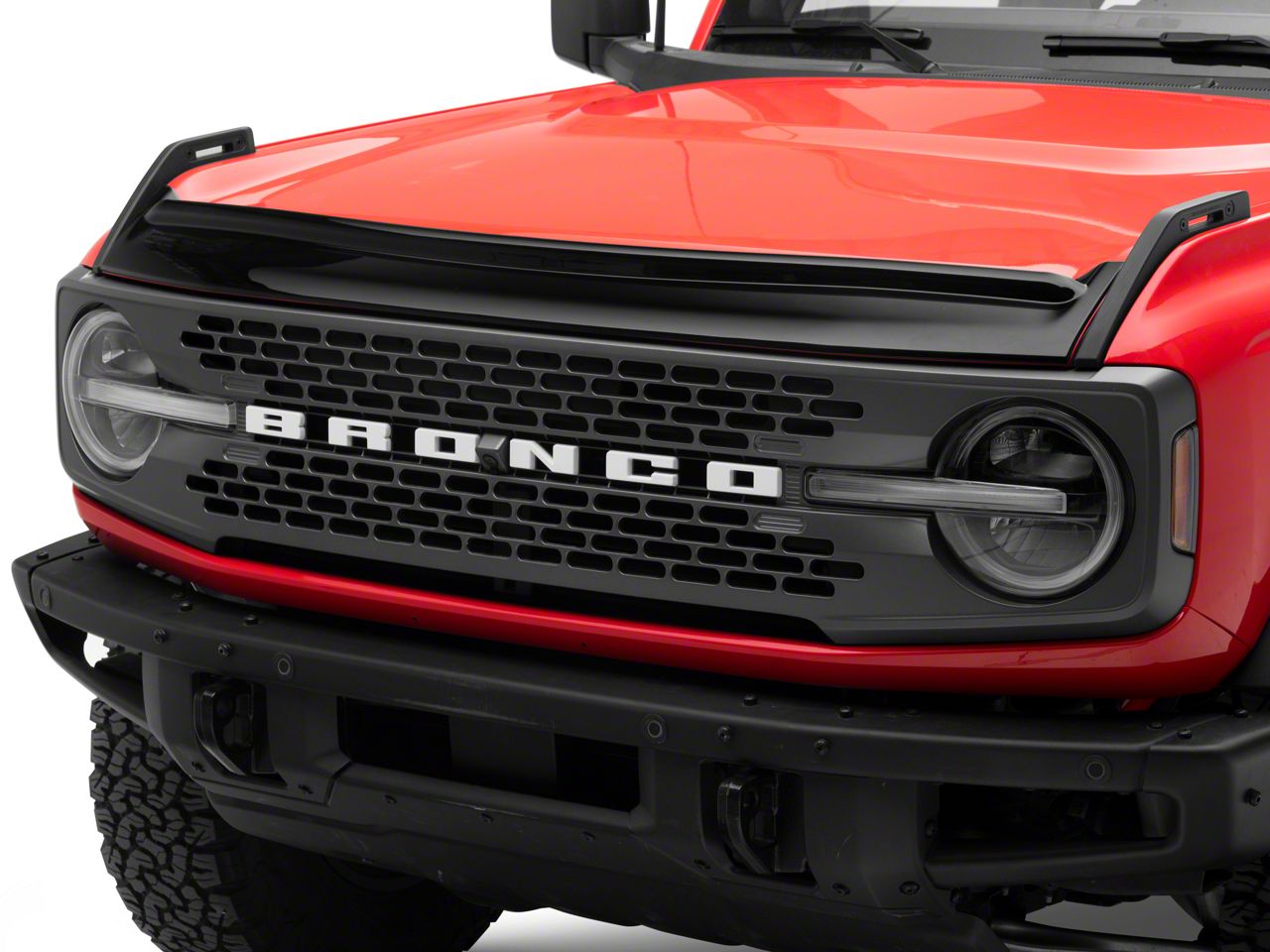 Extra Front End Protection. Shield the leading edge of your Bronco's hood from rocks, stones, and other road debris with a RedRock Hood Deflector. A hood deflector, sometimes called a Bug Guard, will give you all of the benefits of a traditional automotive bra without the hassles. As an added bonus a Hood Deflector is also a great way to cover up any existing damage your Bronco has already acquired.