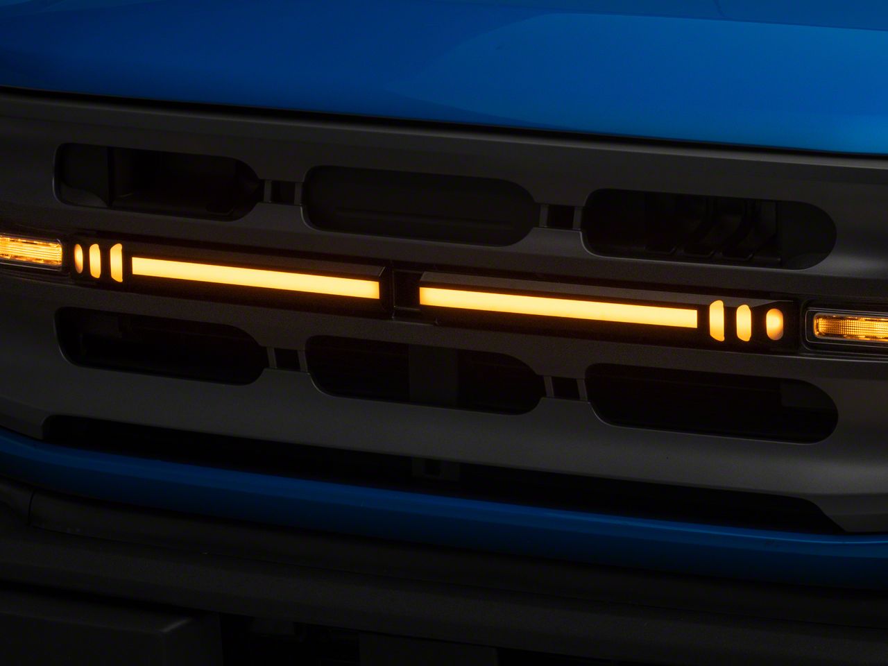 Grille Accent Lighting. Upgrade the appearance and more importantly the safety of your Ford Bronco with a RedRock LED Grille Lighting Kit. These uniquely shaped LED Grille Lights will automatically activate in conjunction with your running lights and can be switched between either amber or white via a selectable switch located in the engine bay. These Grille Lights not only look great, but will also make your Bronco more visible to other drivers at night or in poor weather conditions.