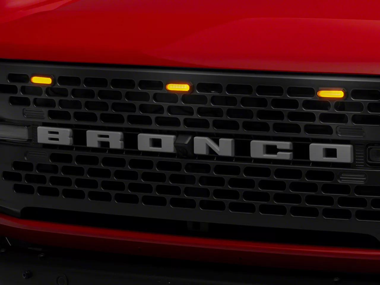 Grille Accent Lighting. Upgrade the look and improve the safety of your Ford Bronco with a RedRock 3-Piece LED Grille Light Kit. When installed these eye-catching LEDs will automatically activate in conjunction with your running lights. These Grille Lights not only look great, but will also make your Bronco more visible to other drivers at night or in poor weather conditions.